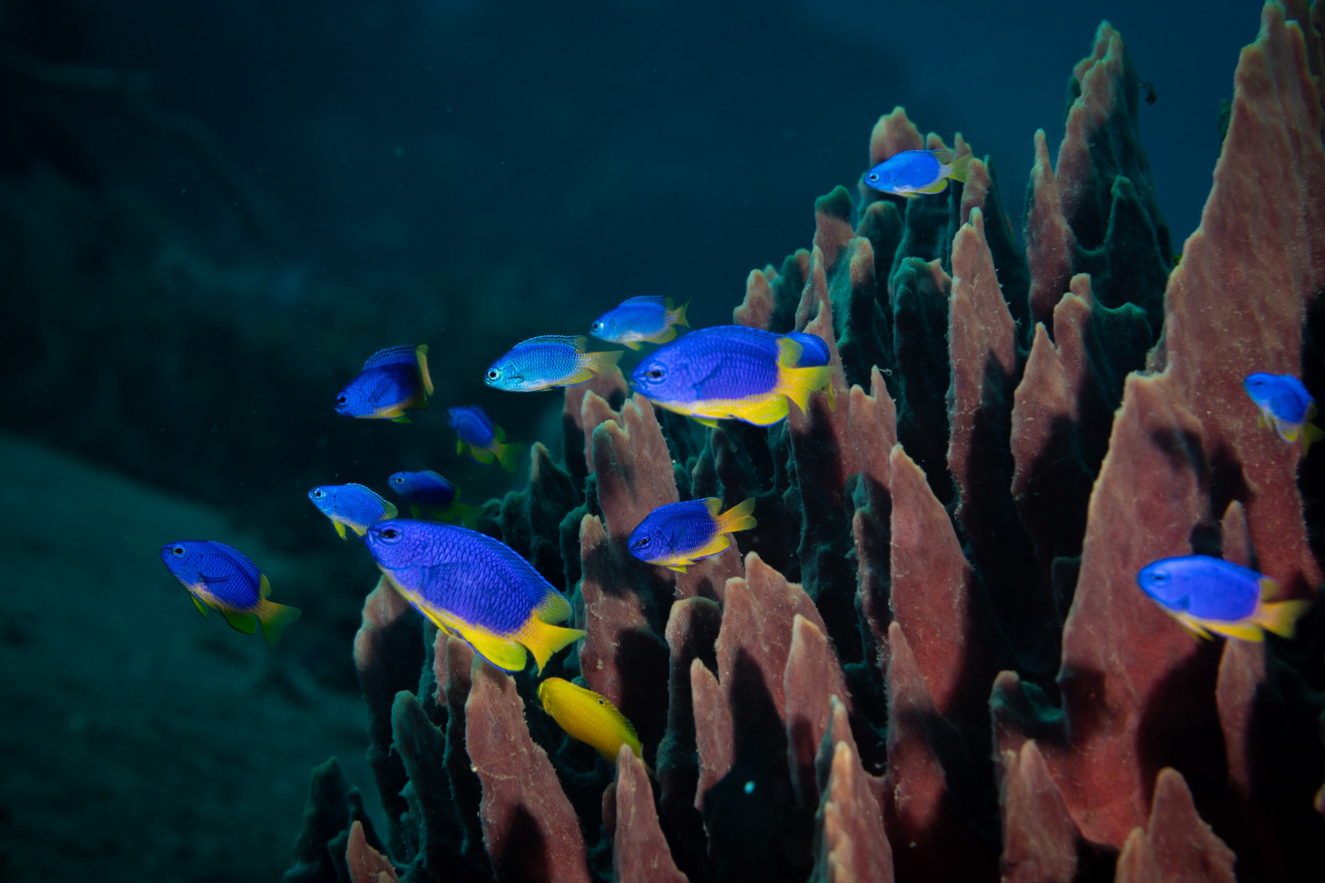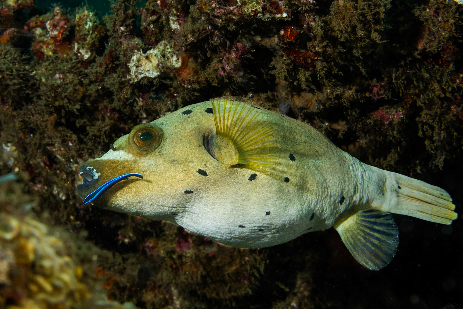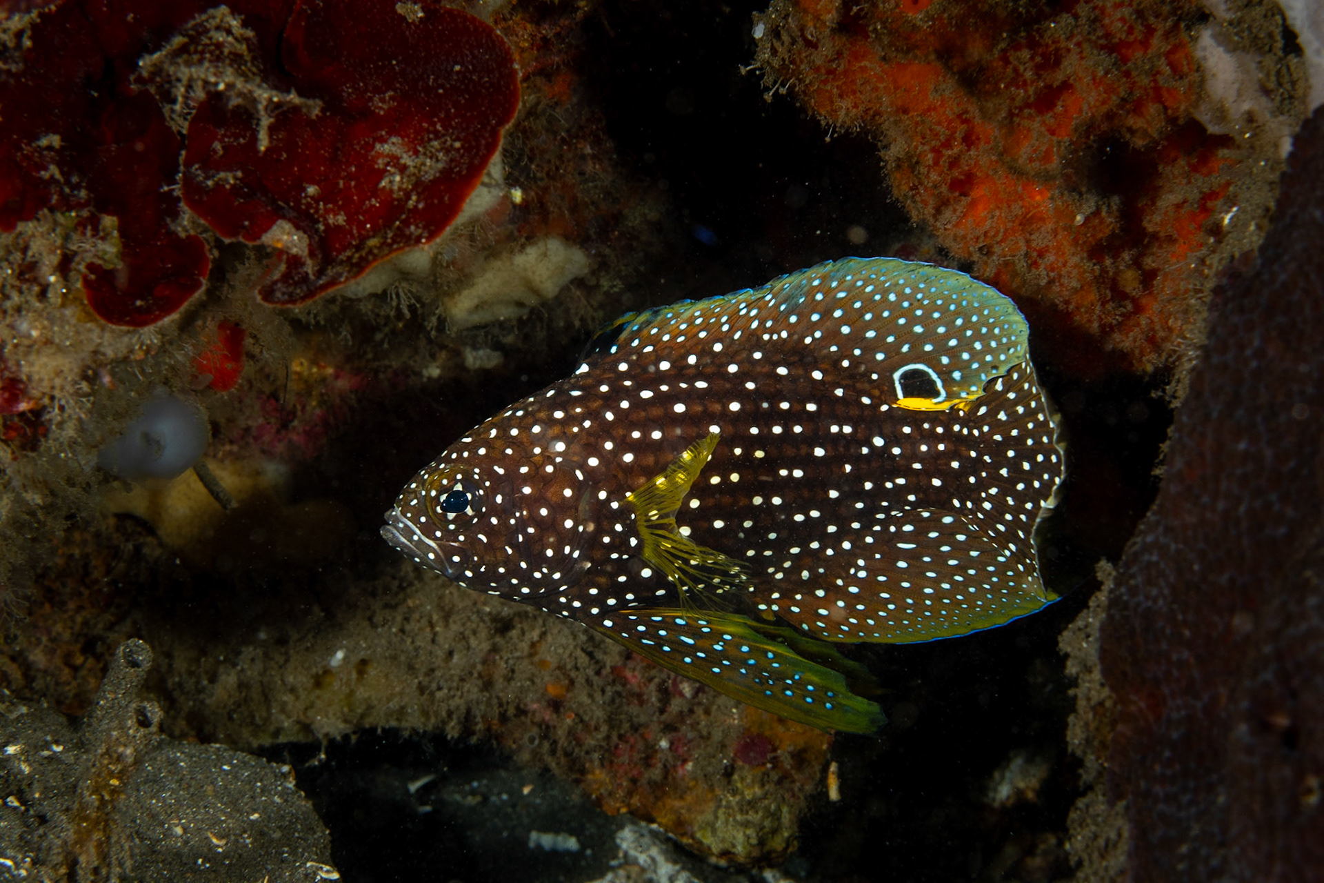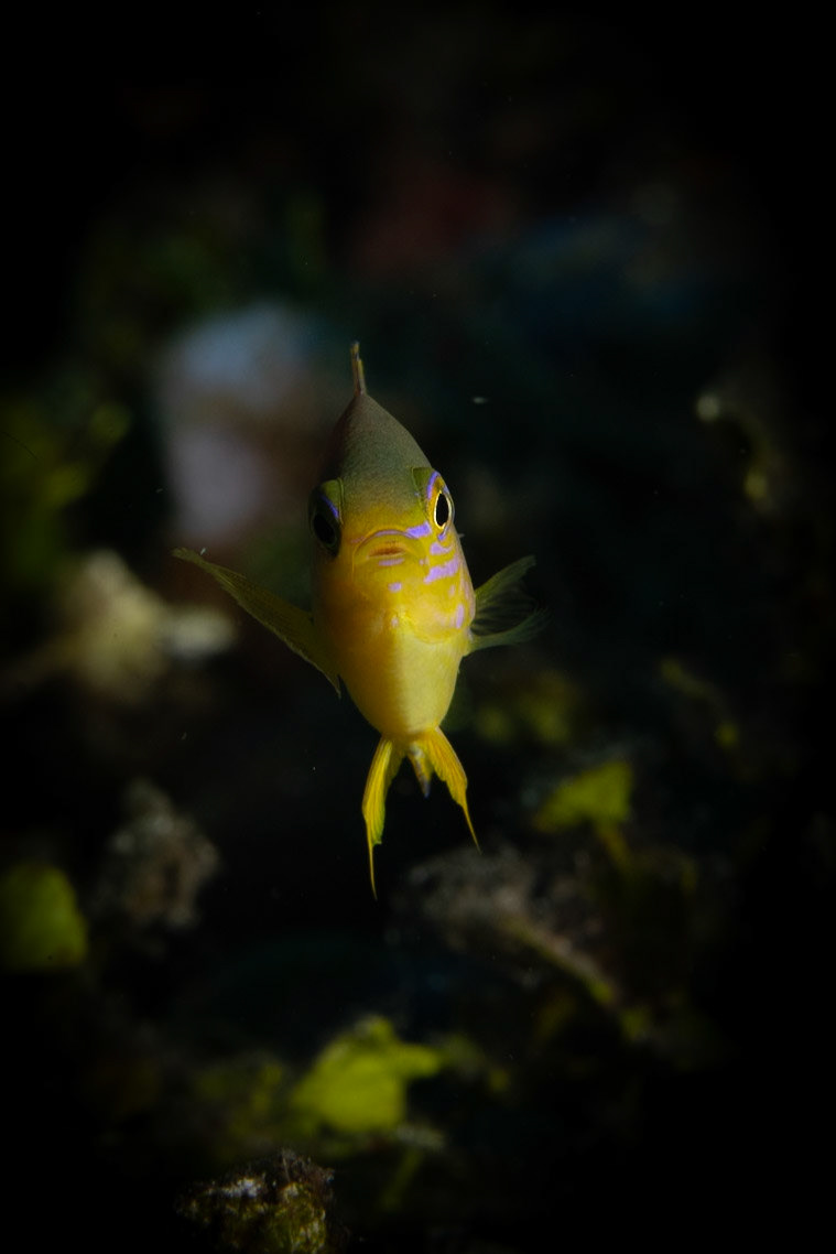 a Yellowflanked Fairy Wrasse whose color exploded with strobe light. Dumaguete, Philippines, July 2023